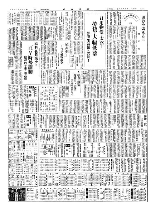- 日用物價(일용물가)는太高(태고)한데 勞賃(노임)은大幅低落(대폭저낙)