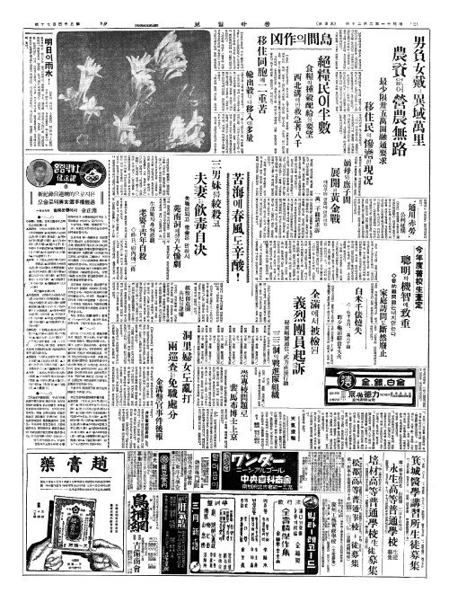 - 全人口四萬(전인구사만)에 文盲二萬八千(문맹이만팔천)