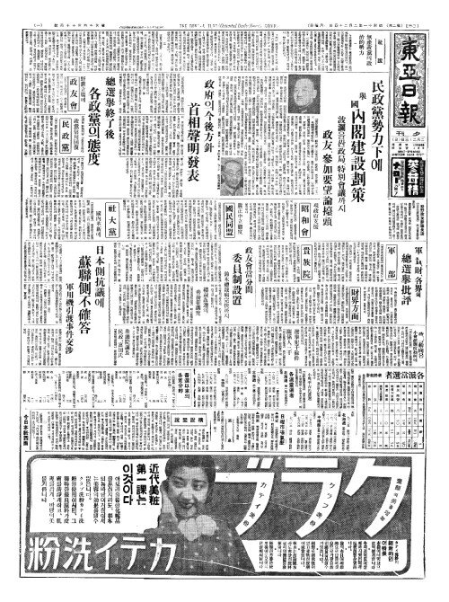 - 民政黨勢力下(민정당세력하)에 擧國內閣建設劃策(거국내각건설획책)