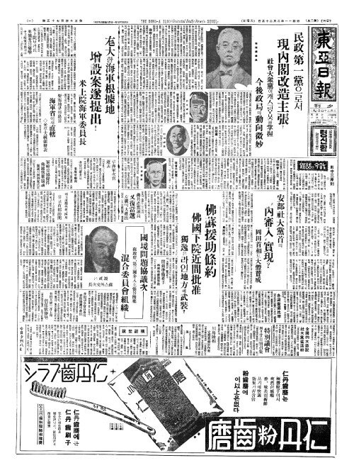 - 日本(일본)의軍縮脫退後(군축탈퇴후) 英(영)、極東防備强化(극동방비강화)