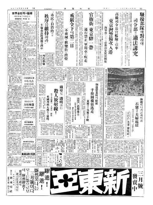 - 戒嚴令下(계엄령하)의第二日(제이일) 不夜城(부야성)의歡樂街(환요가)도消燈(소등)