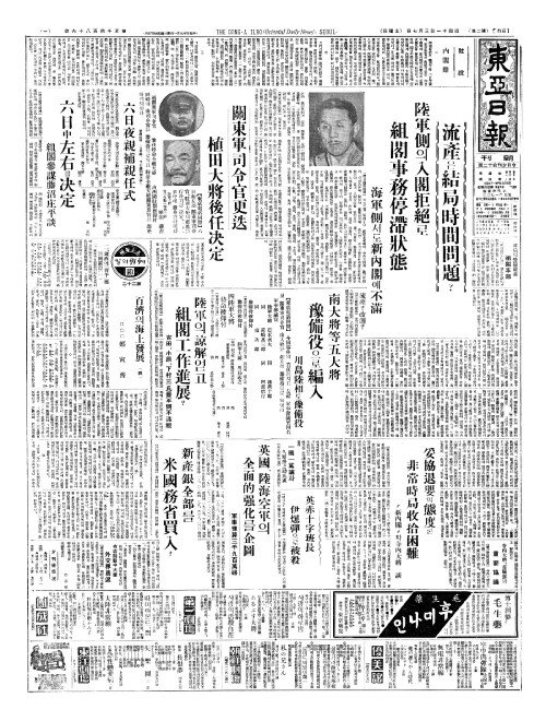 - 陸軍(륙군)의諒解(량해)얻고 組閣工作進展(조각공작진전)?
