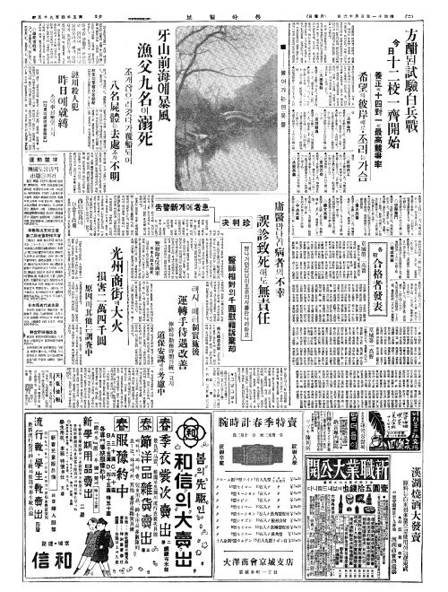- 光州商街(광주상가)에大火(대화) 損害二萬四千圓(손해이만사천원)