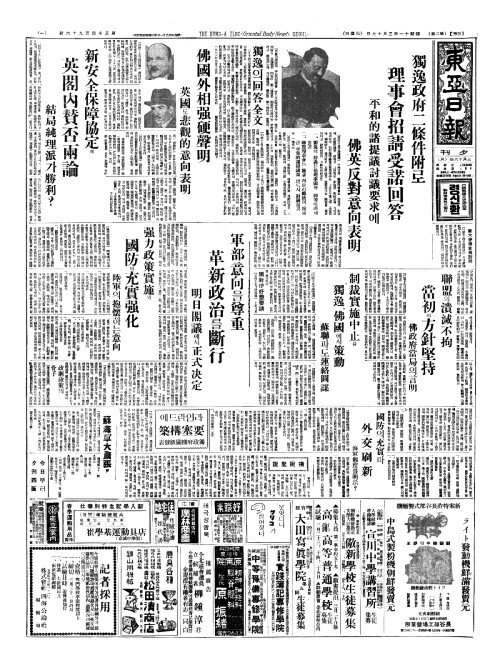 - 佛國外相强硬聲明(불국외상강경성명) 英國(영국)도悲觀的意向表明(비관적의향표명)