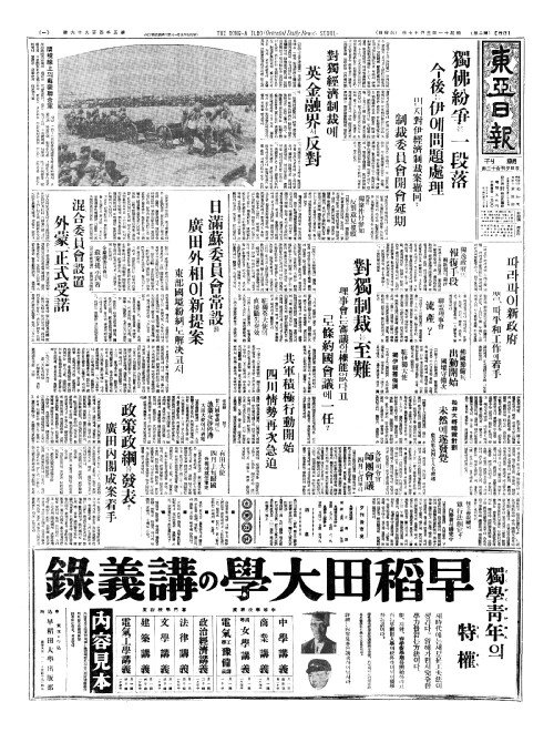 - 日滿蘇委員會常設(일만소위원회상설)을 廣田外相(광전외상)이新提案(신제안)