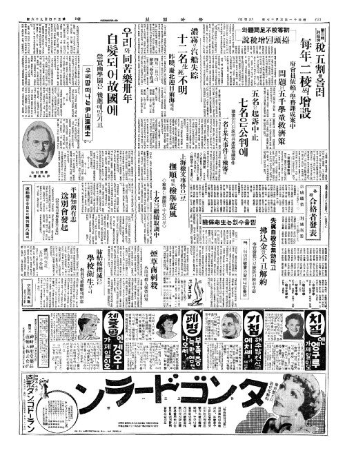 - "增稅(증세)라도斷行(단행)하야 義務敎育實施(의무교육실시)하라"
