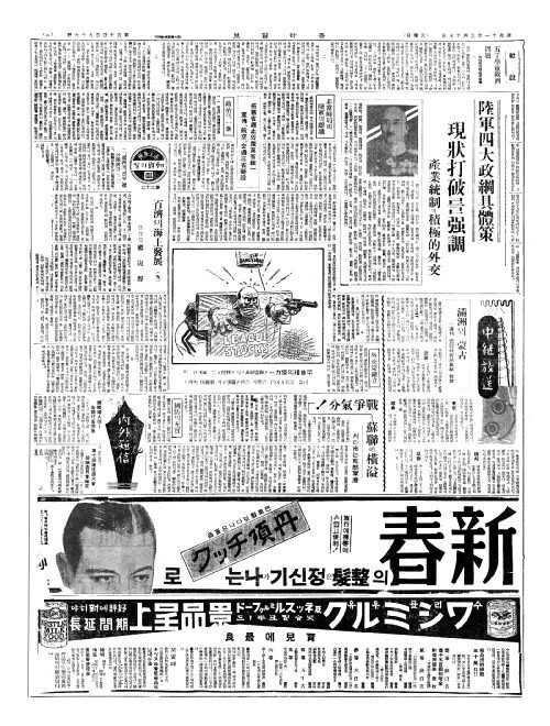 - 政策政綱(정책정강)을發表(발표)? 廣田內閣成案着手(광전내각성안저수)