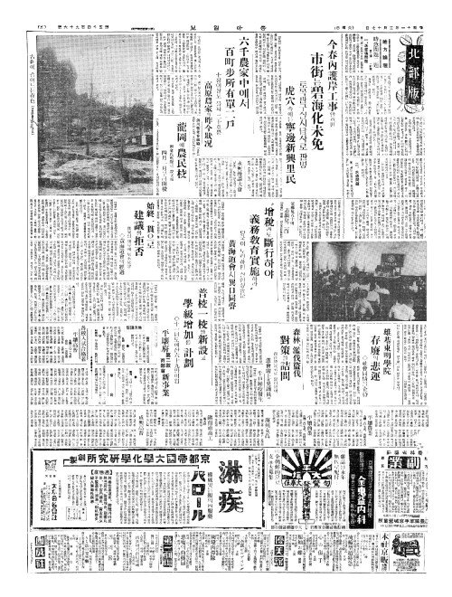 - 今春內護岸工事(금춘내호안공사)안흐면 市街(시가)는碧海化未免(벽해화미면)