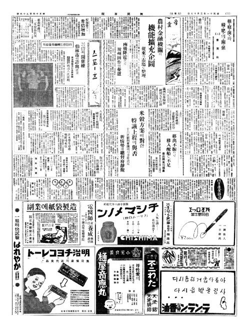 - 運動欄(운동난)은今日(금일)부터朝刋第八面(조천제팔면)에