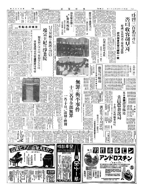 - 無罪(무죄)된衡平事件(형평사건) 十三名(십삼명)엔全部無罪(전부무죄)