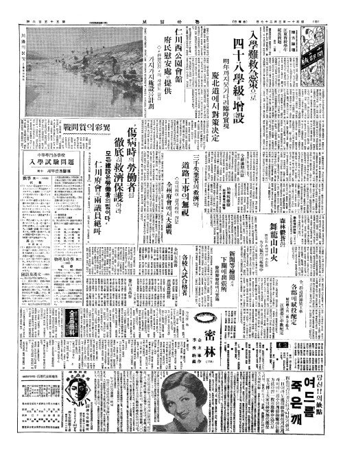 - 入學難救急策(입학난구급책)으로 四十八學級(사십팔학급)을增設(증설)