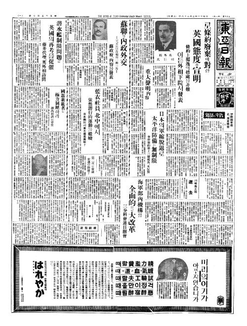 - 로條約廢棄(조약폐기)에對(대)한 英國態度(영국태도)를宣明(선명)