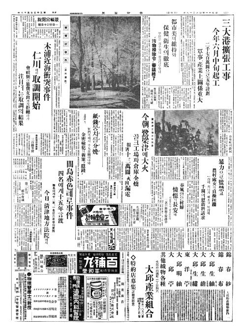 - 三大港擴張工事(삼대항확장공사) 今年六月中旬起工(금년륙월중순기공)