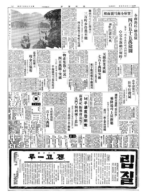 - 物產集散(물산집산)의好况(호황) 四百萬圓(사백만원)을突破(돌파)