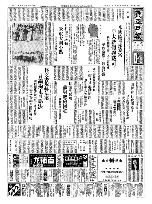 - 米國陸軍豫算案(미국륙군예산안) 루大統領遂裁可(대통령수재가)