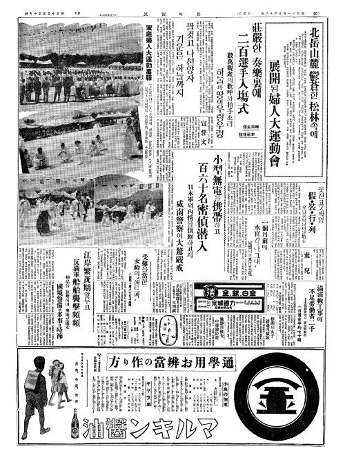 - 北岳山麓鬱蒼(배악산녹울창)한 松林(송임)속에 展開(전개)된婦人大運動會(부인대운동회)