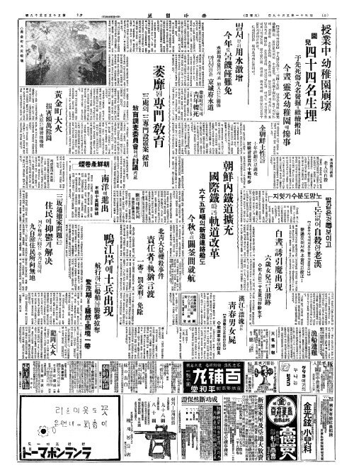 - 授業中(수업중)、幼稚園崩壞(유치원붕괴) 園兒四十四名生埋(원아사십사명생매)