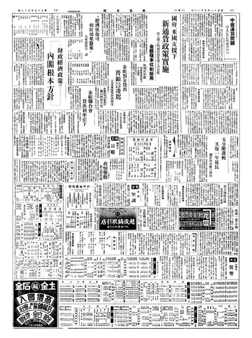 - 國府(국부)、米國支援下(미국지원하) 新通貨政策實施(신통화정책실시)