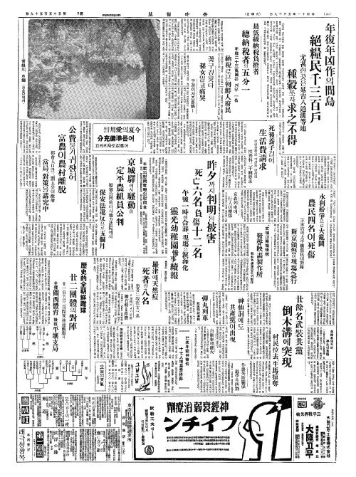 - 年復年凶作(년복년흉작)의間島(간도) 絕糧民千三百戶(절량민천삼백호)