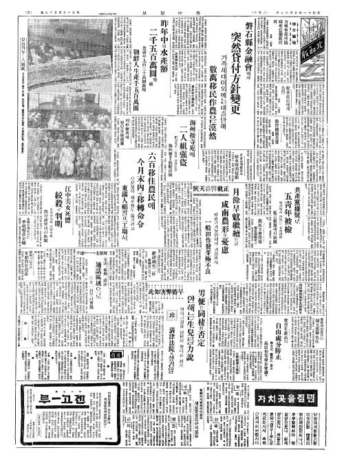 - 六百移住農民(륙백이주농민)에 今月末內(금월말내)로移轉命令(이전명령)