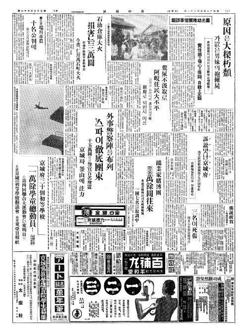 - 石油倉庫大火(석유창고대화) 損害(손해)는三萬圓(삼만원)
