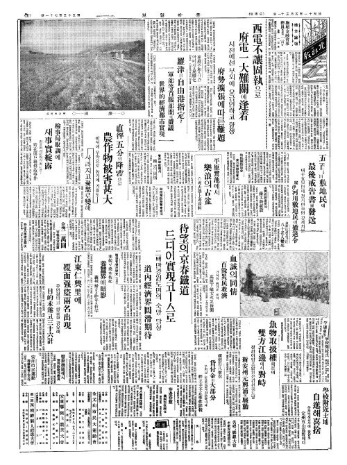 - 判明(판명)된慶北雹災額(경북박재액) 十七面(십칠면)에十六萬圓(십륙만원)