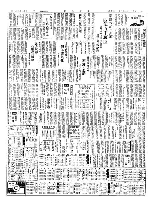 - 朝鮮米昨年生產額(조선미작년생산액) 四億九千萬圓(사억구천만원)