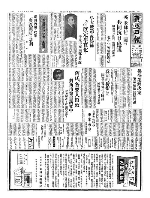 - 英(영)、米佛伊三國(미불이삼국)에 共同抗日(공동항일)을提議(제의)