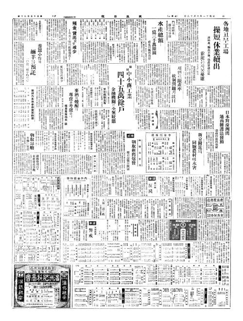 - 各地(각지)고무工場(공장) 操短(조단)、休業續出(휴업속출)