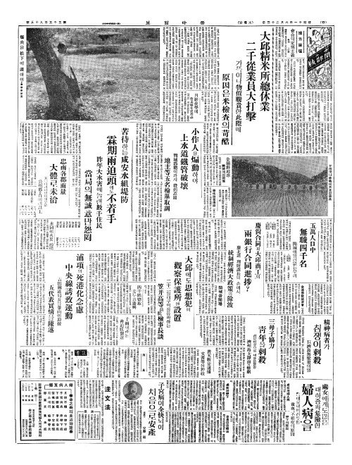 - 大邱精米所總休業(대구정미소총휴업) 二千從業員大打擊(이천종업원대타격)