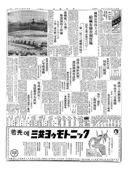 - 織物品質向上(직물품질향상)코저 絹麻布檢查制實施(견마포검사제실시)
