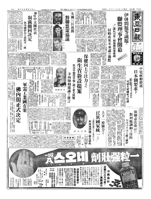 - 伊(이)에問題等議題(문제등의제)로 聯盟理事會開幕(련맹리사회개막)