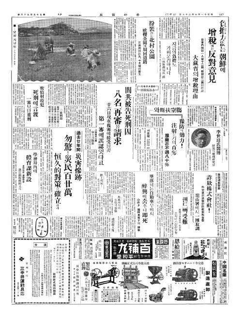 - 過去廿年間災害慘跡(과거입년간재해참적) 勿驚(물경)!災民百廿萬(재민백입만)