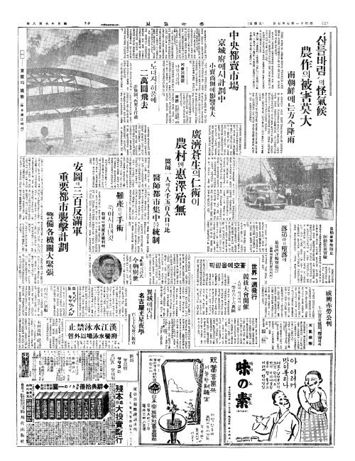 - 北滿特產出廻(배만특산출회) 水害(수해)로杜絕(두절)!