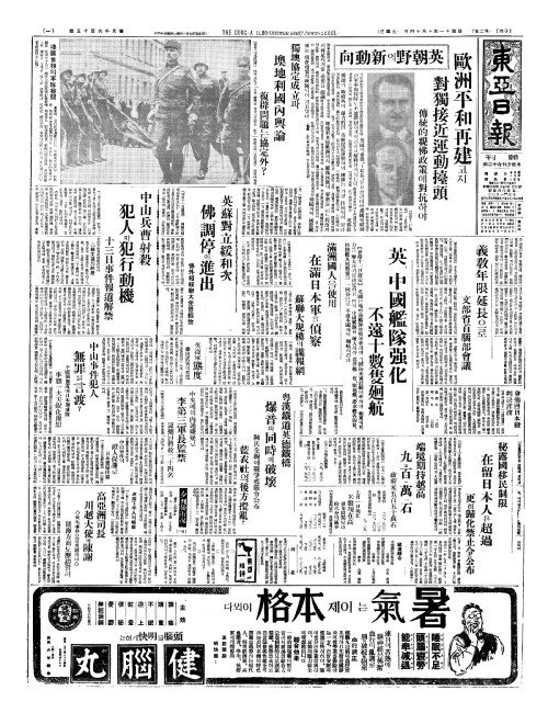 - 英(영)、中國艦隊强化(중국함대강화) 不遠十數隻廻航(부원십삭척회항)