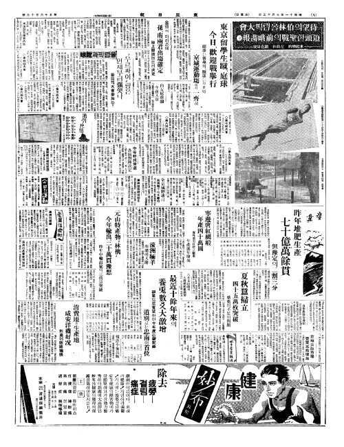 - 東京留學生蹴(동경유학생축)、庭球(정구) 今日(금일)、歡迎戰擧行(환영전거항)
