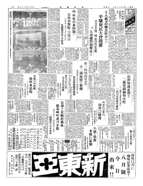 - 十八萬府民總意結合(십팔만부민총의결합)시킬 平壤府民大會開催(평양부민대회개최)