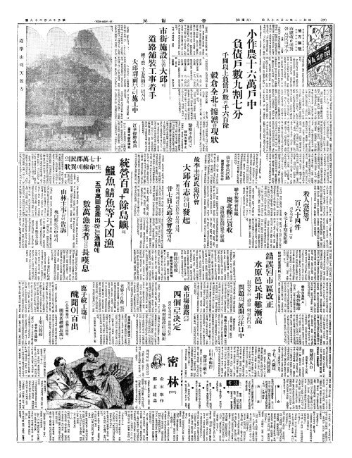 - 小作農十六萬戶中(소작농십륙만호중) 負債戶數九割七分(부채호삭구할칠분)