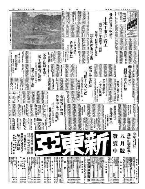 - 元山(원산)에長期降雨(장기항우)로 數千勞働者生路漠然(삭천노동자생노막연)