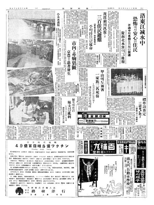 - 茂溪前川汎濫(무계전천범람)으로 三百住民避難(삼백주민피난)