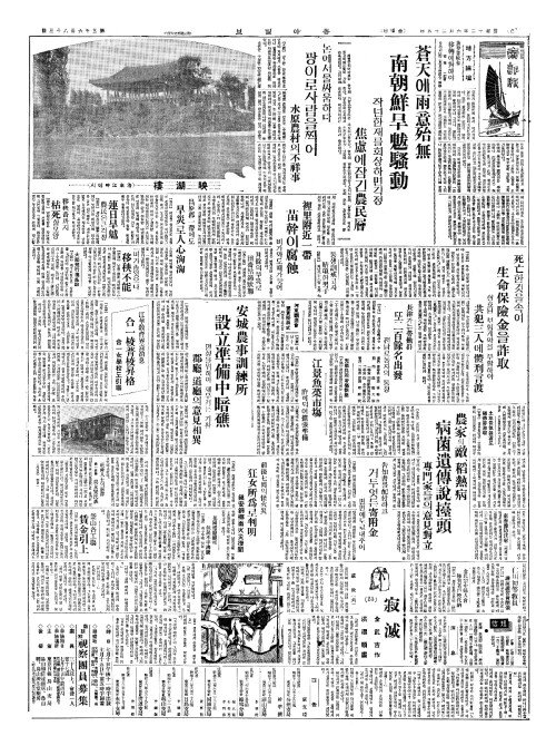- 昌原郡一帶(창원군일대)에도 旱災(한재)로人心洶洶(인심흉흉)