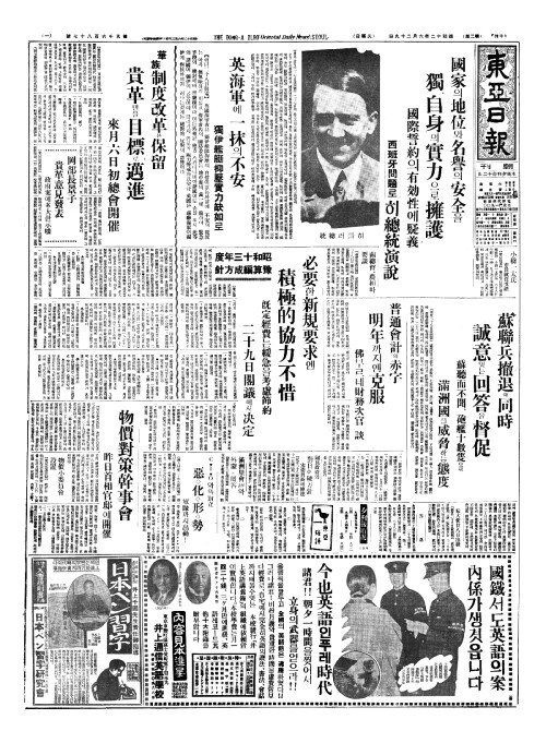 - 蘇聯兵撤退(소련병철퇴)와同時(동시) 誠意(성의)잇는回答(회답)을督促(독촉)