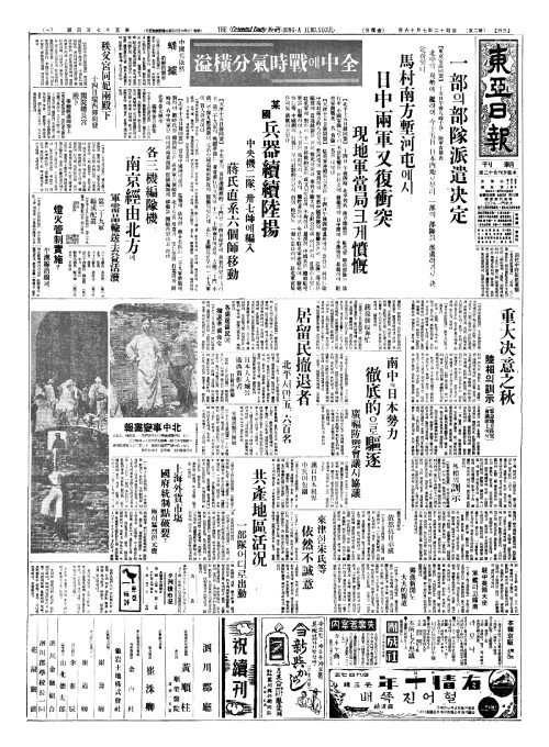 - 居留民撤退者(거유민철퇴자) 北平(배평)서만五(오)、六百名(륙백명)
