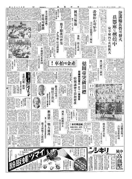 - 蘆溝橋兵營(로구교병영)에發火(발화) 兵器庫(병기고)도燃燒中(연소중)