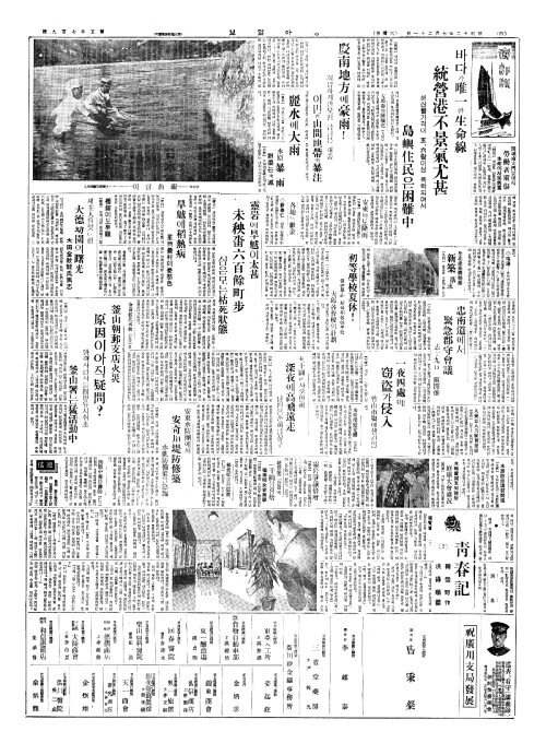 - 暴雨(폭우)로淸州(청주)에洪水(홍수) 浸水家屋二千戶(침수가옥이천호)