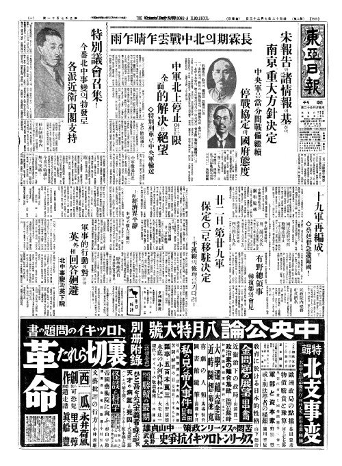 - 北中(북중)에新局面急展開(신국면급전개)!!宋哲元(송철원)의獨立行動(독입행동)으로 北中時局一層緊張(배중시국일층긴장) 廿九軍撤退(입구군철퇴)를南京側不認(남경측부인) 冀察(기찰)에對(대)한壓迫益强化(압박익강화)?