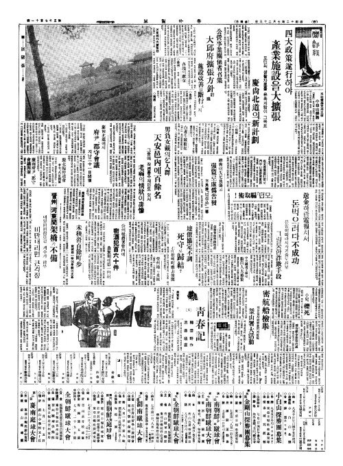 - 豪雨(호우)에土沙崩壞(토사붕괴) 滿浦線一部埋沒(만포선일부매몰) 平壤行(평양항)과 前川行列車(전천행렬차)는 後進(후진) 北薪峴(북신현)、新興洞間不通(신흥동간부통)