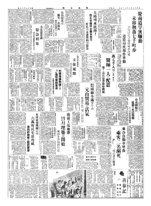 - 乘合自動車墜落(승합자동차추낙) 乘客二名溺死(승객이명닉사) 盈德江口(영덕강구)에서생긴椿事(춘사)