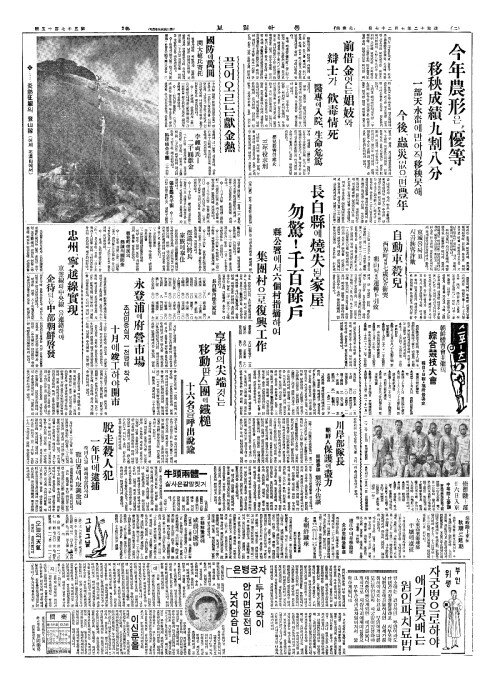 - 今年農形(금년농형)은"優等(우등)" 移秧成績九割八分(이앙성적구할팔분)