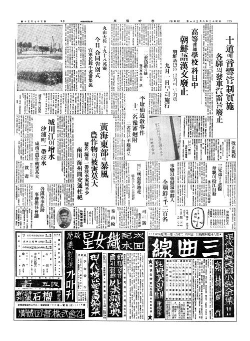 - 高等普通學校科目中(고등보통학교과목중) 朝鮮語漢文廢止(조선어한문폐지)